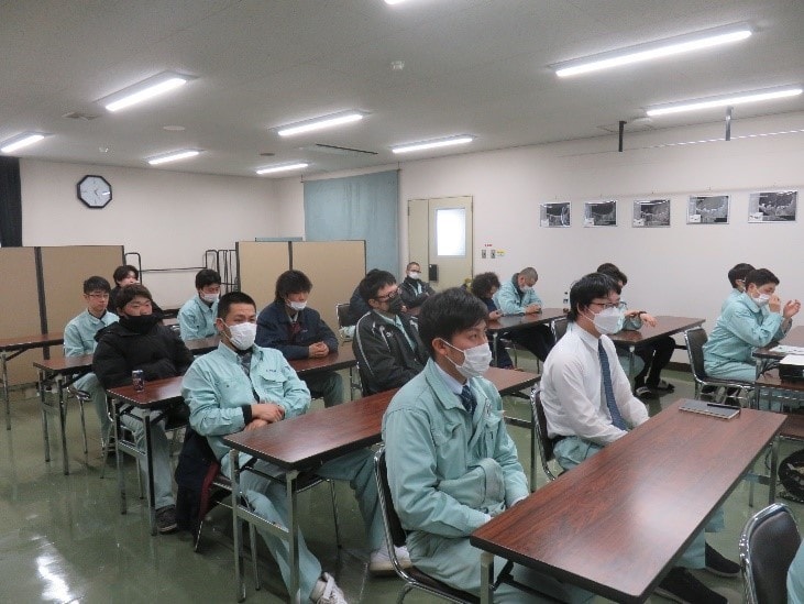 地震が発生した3月11日に合わせ、震災の記憶が風化しないように、地震と津波に直面した当社の状況と、その経験を今にどう生かしているかを、記録画像や映像とともに次の世代に伝える講習を行いました。当時を知らない社員は、説明した社員の話に耳を傾け、なぜ今BCPを策定しているのか、避難訓練や安否訓練を行っているかという意味を理解してくれたようです。