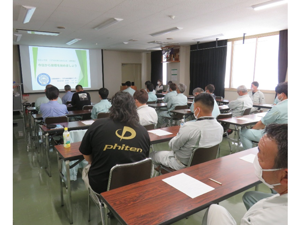八戸市総合健診センターから講師を招き、「今日から禁煙を始めましょう」と題しての健康講話を頂きました。参加者は約30名。弊社の喫煙者の割合は男性で46.2%となっており、全国平均の27.1%より大幅に上回っているという説明があり、喫煙によるデメリット、禁煙をすることのメリット、そして禁煙をする方法について多角的な視点からお話を頂きました。